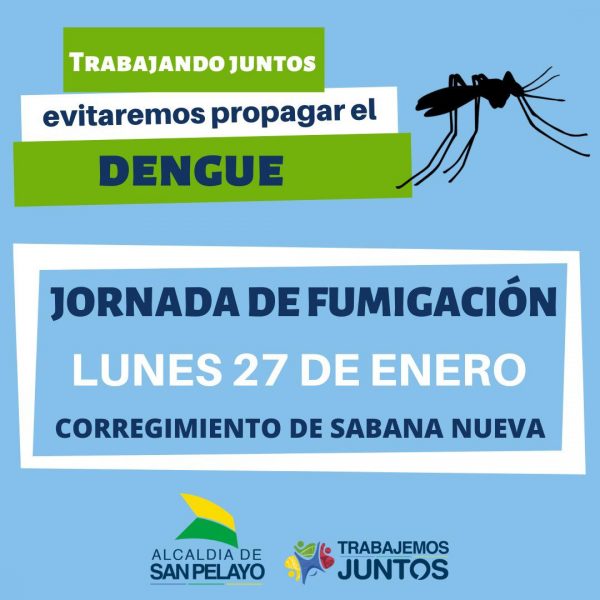Este lunes 27 de enero, inicia la jornada de fumigación del insecticida Malathium, en el corregimiento de Sabana Nueva, San Pelayo, con la finalidad de prevenir la proliferación del mosquito transmisor.