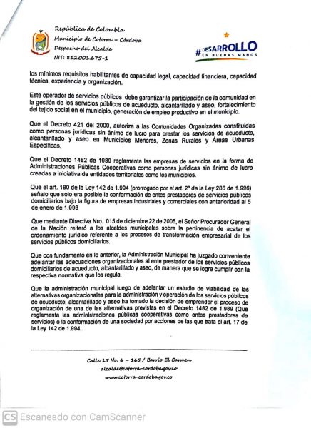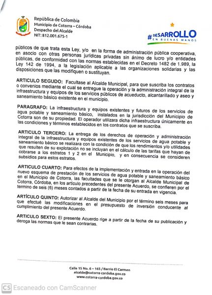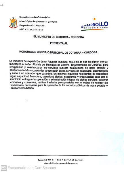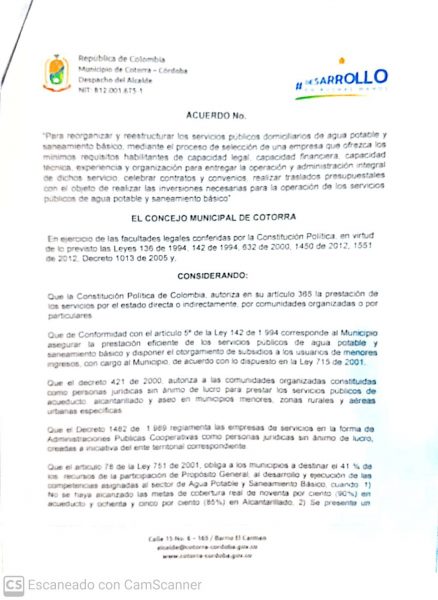 Gran polémica y descontento ciudadano ha generado en el municipio de Cotorra el intento de buscar un operador privado para el manejo de las Empresas Públicas Municipales que presten el servicio público domiciliario de Agua Potable.