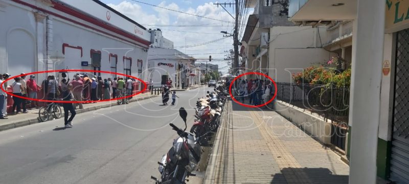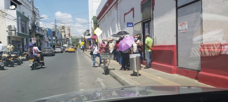 Según lo manifestado por el denunciante, no hay distanciamiento social en las largas filas y al ingresar a la oficina sienten un cambio abrupto de la temperatura, pues hay aires acondicionados encendidos y pueden ocasionar graves afectaciones en la salud de los usuarios, teniendo en cuenta el fuerte sol que soportaron antes de entrar.