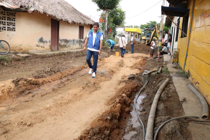Para mejorar la movilidad en el casco urbano ya Inició la construcción de 840 metros de pavimento hidráulico con bordillos y andenes entre los barrios las Vegas, Santo Domingo, 9 de Diciembre, El Pepo y El Paraíso.