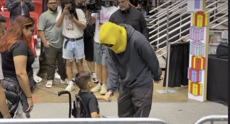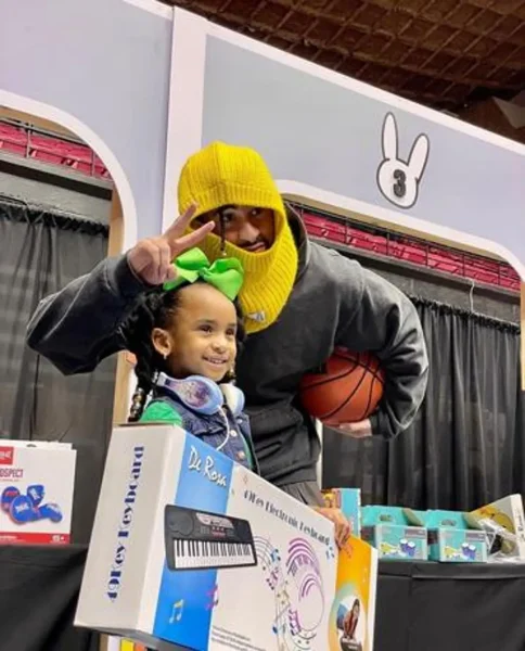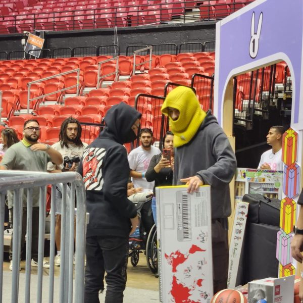 Luciendo un abrigo y pantalones oscuros, tenis blancos y una capucha de invierno color amarilla, Benito Antonio Martínez Ocasio ‘Bad Bunny’ repartió 25.000 artículos de arte, música y deporte a niños y jóvenes de escasos recursos con motivo de la navidad en Puerto Rico.