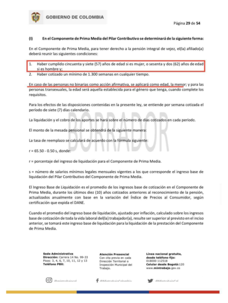Según el documento, se puede leer entre líneas, que los hombres que se perciban como no binarios, es decir, que no se identifiquen ni con el género masculino o femenino, podrían pensionarse a sus 57 años, así como las mujeres.